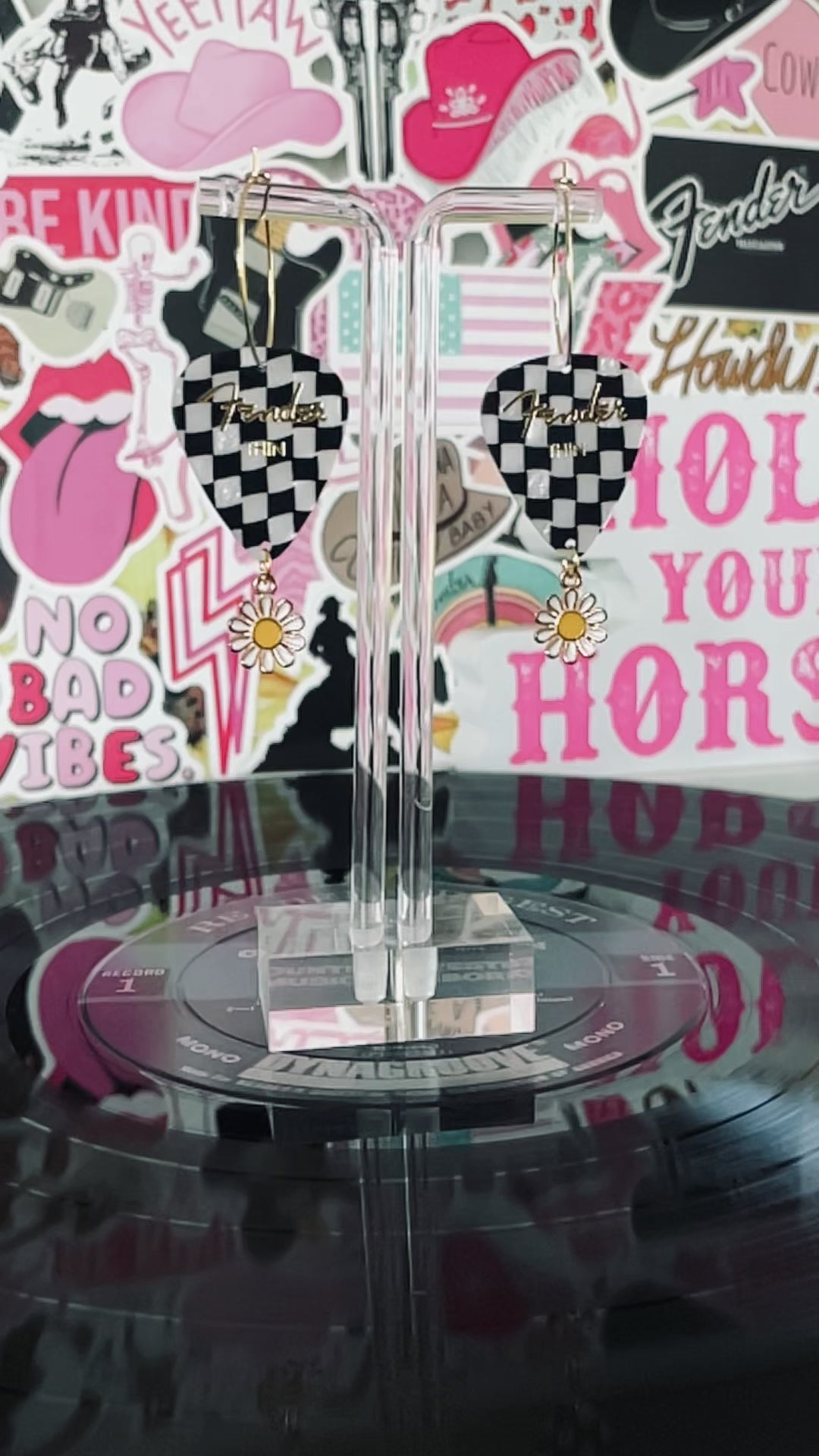 All of our earrings are handmade and designed with guitar picks by the Gilded Pick team.