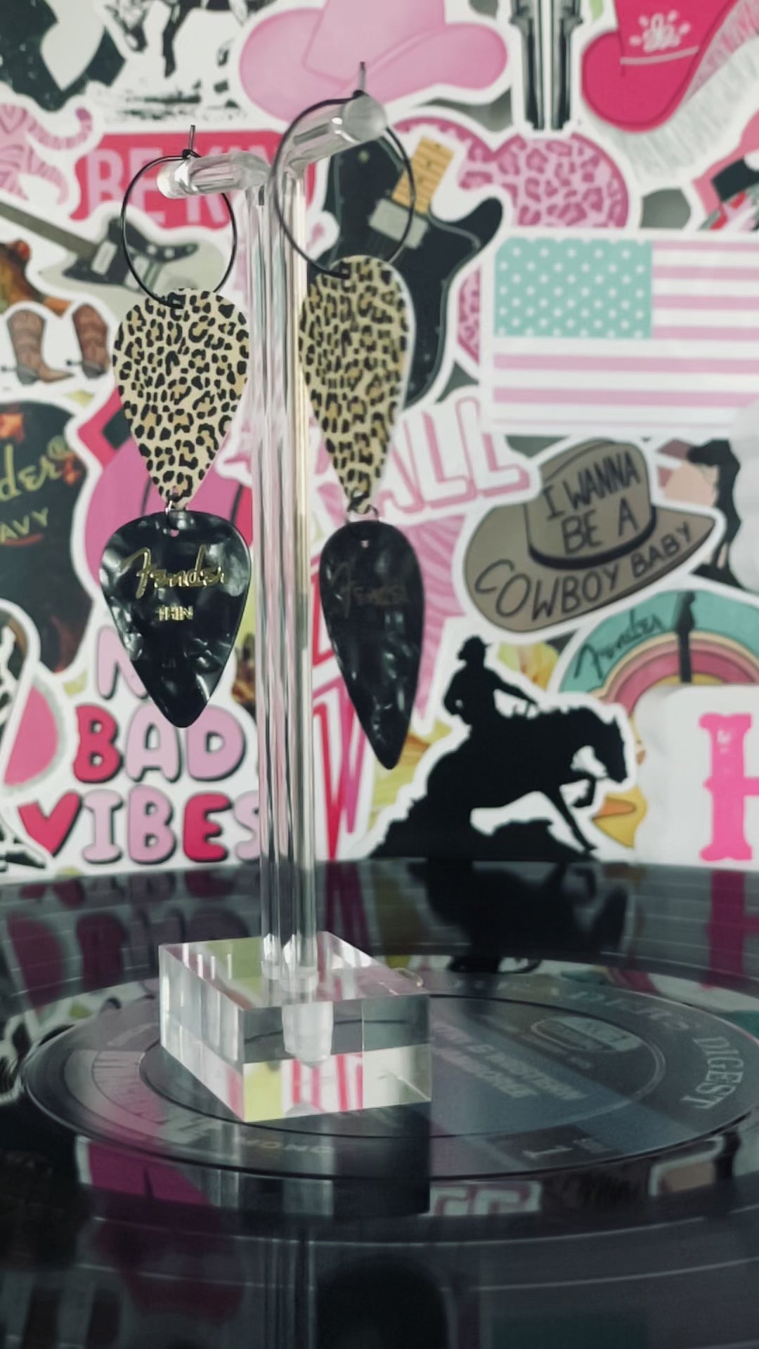 All of our earrings are handmade and designed with guitar picks by the Gilded Pick team.