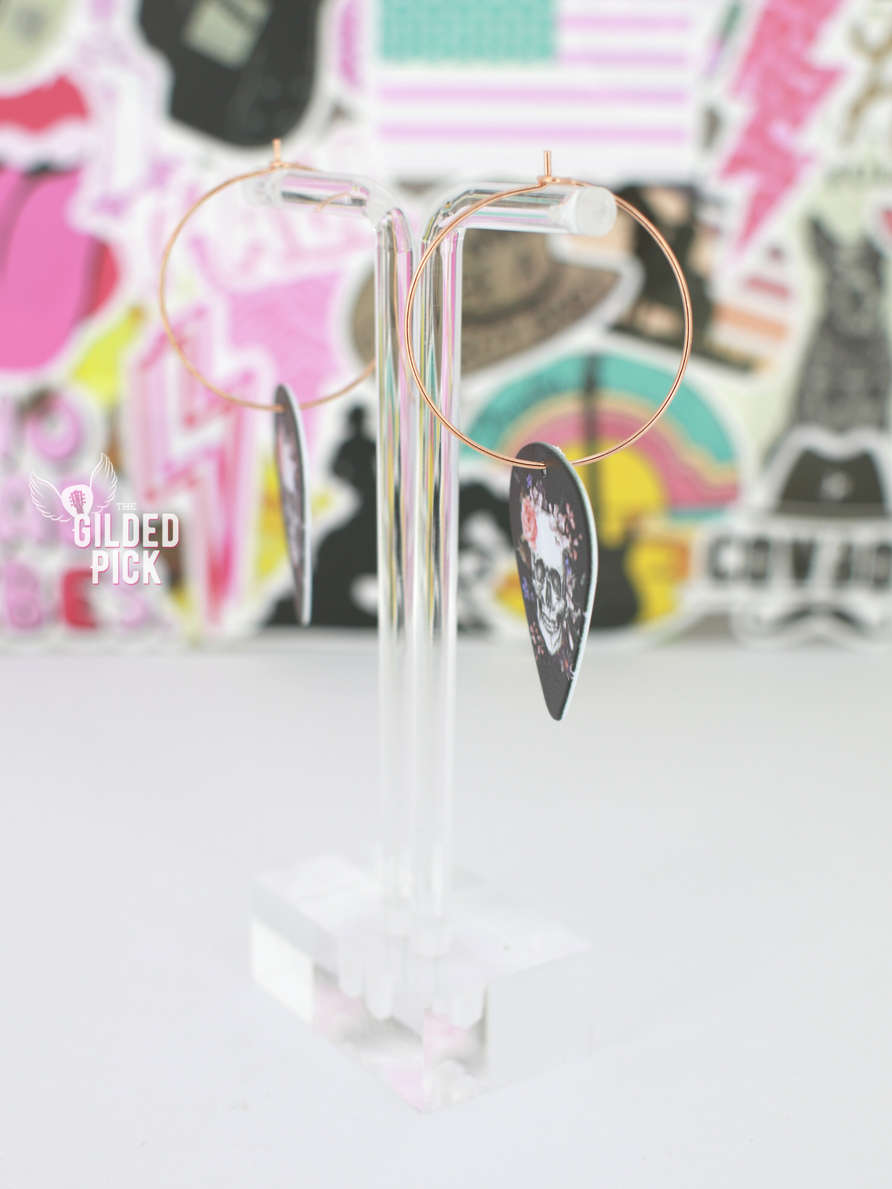 All of our earrings are handmade and designed with guitar picks by the Gilded Pick team.